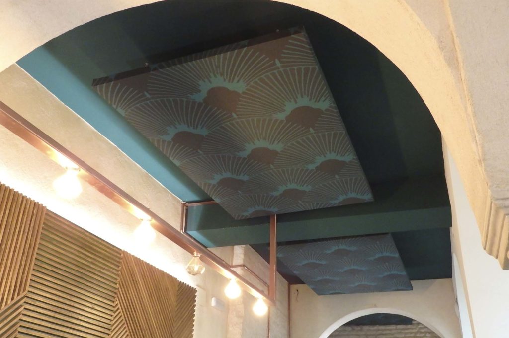 A veces el decorador o interiorista no ve claro que el panel básico vaya a encajar muy bien en el aspecto que él quiere darle al local, pero hay que poner algo puesto que el local lo necesita acústicamente. Pues nada aquí estamos nosotros para asesorarles y fabricarles lo que necesiten.